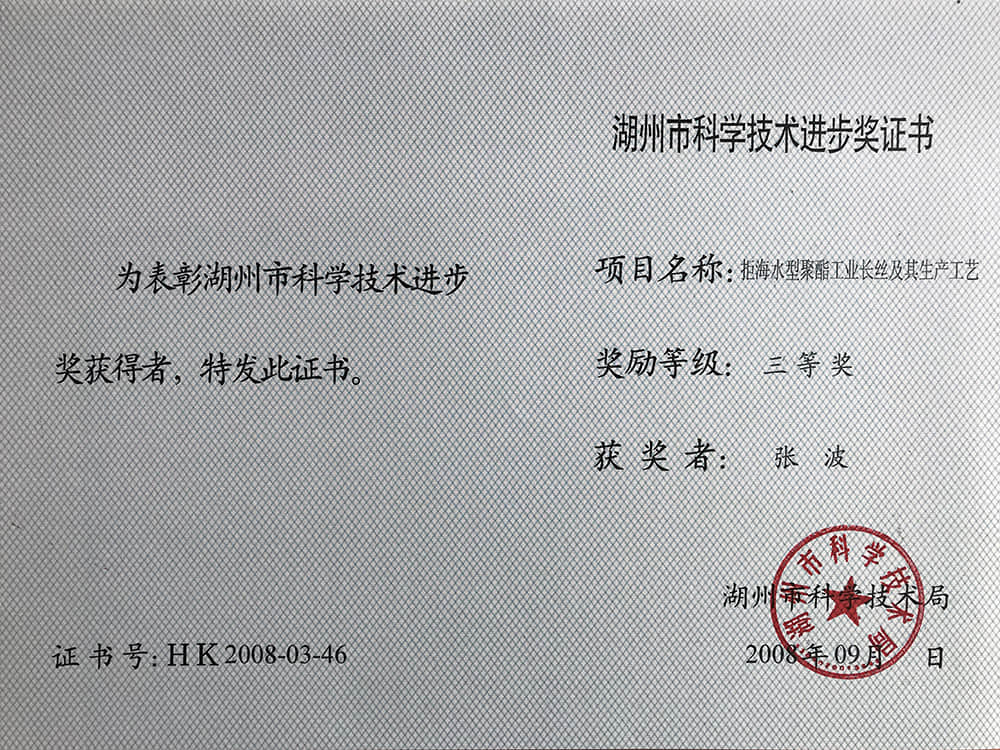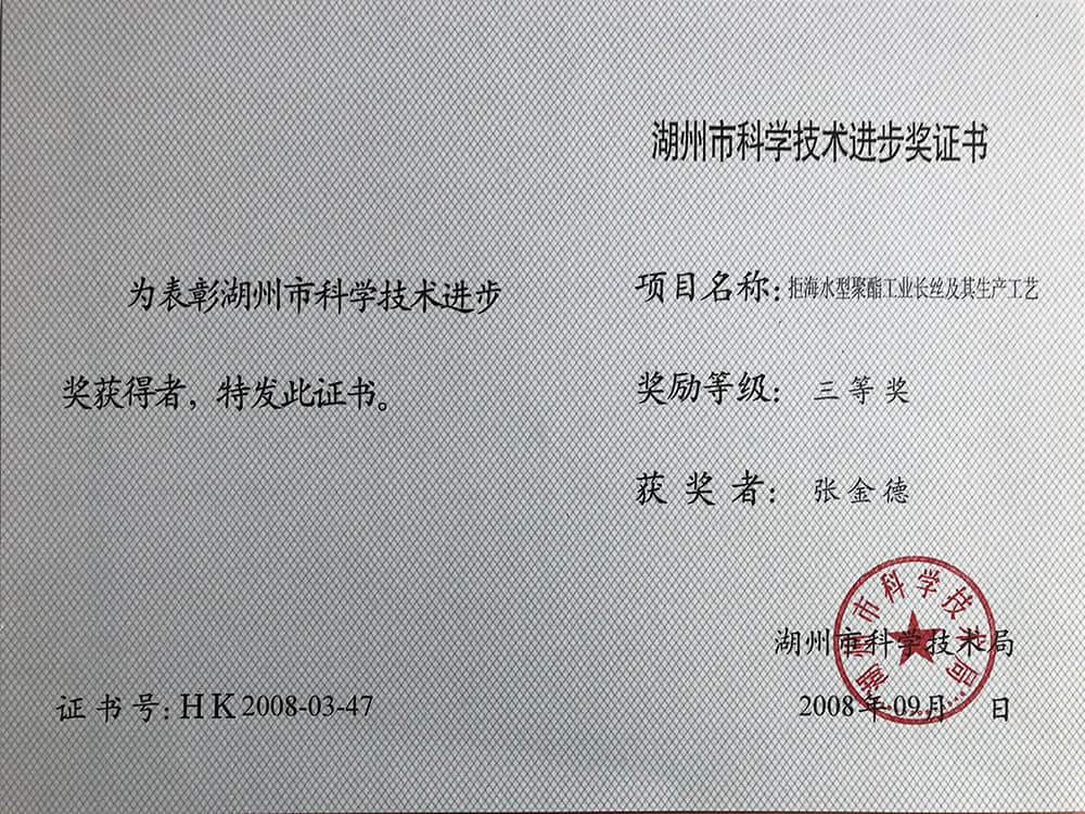 • 2008湖州市科技進步獎三等獎-張金德